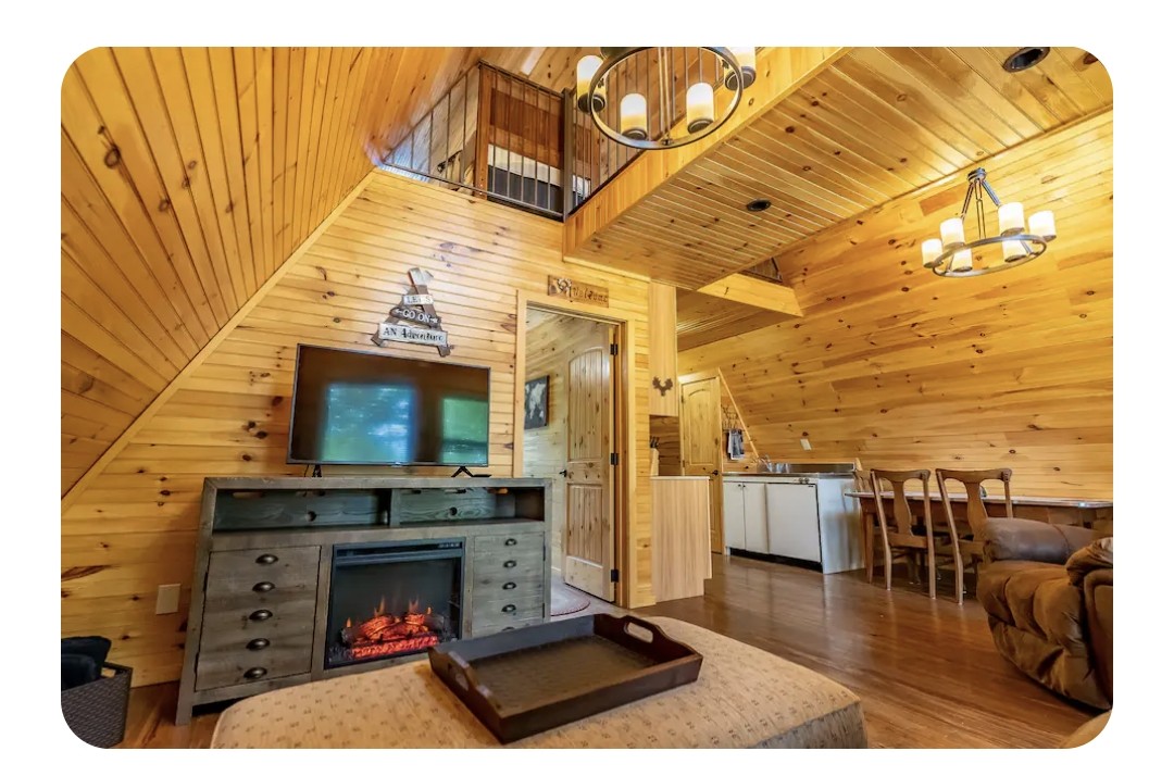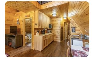 Deer Wood Cabin is located inside a gated private property. Come & escape from the hustle and bustle of everyday life. This cabin has a comfortable living, dining, a kitchen with cooktop, mini-fridge, & microwave for all your meals. Queen bedroom, sleeper sofa, & bath on main, with two twin beds and a sleeper sofa in the upstairs loft, to comfortably sleep 8. Relax in the hot tub available for your enjoyment with amenities such as the park style charcoal grill & fire pit area.