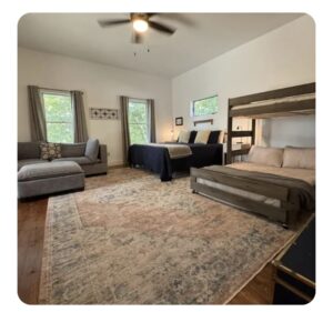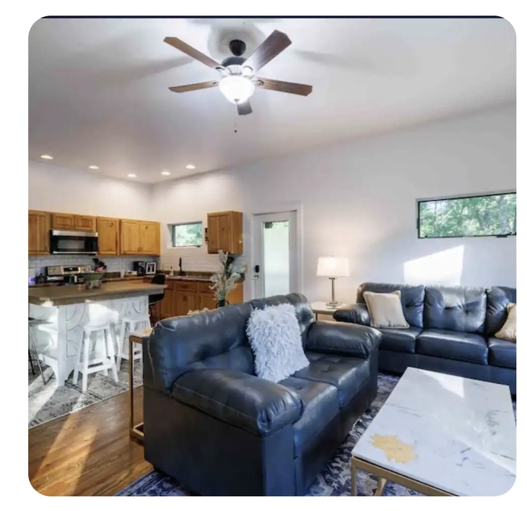 Whispering Pines is the top floor unit . it's one of three units @Buena Vista Bluffs . This spacious one-bedroom, one-bath apartment with fully equipped kitchen. separate living room and a large screened in deck . the spacious bedroom has a king bed and a full/twin bunk bed . The ramp is wheelchair accessible. there are no stairs to climb at this until . Our terrain is a bit rugged. There is enough parking for 1 vehicle per unit. This is an apartment style unit, you might hear your neighbors